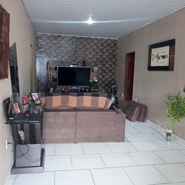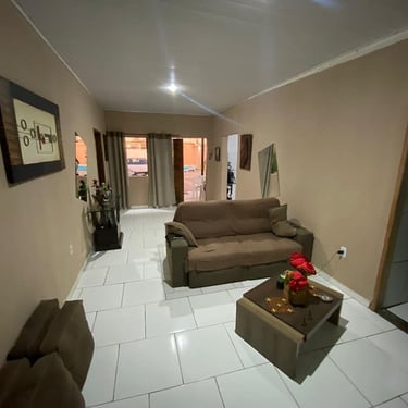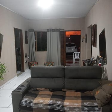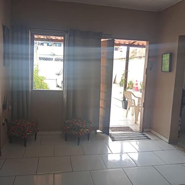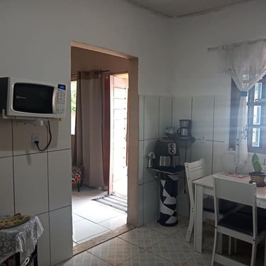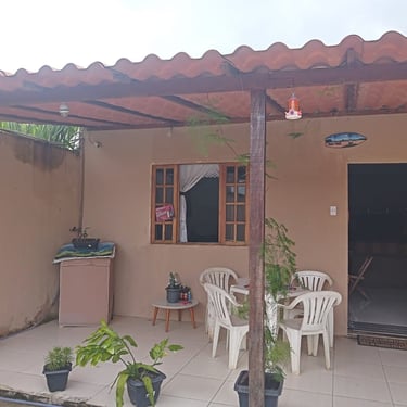 Casa à venda em Sepetiba com 2 quartos, closet, cozinha ampla, sala espaçosa, varanda, garagem e jardim. Valor: R$ 210 mil à vista.